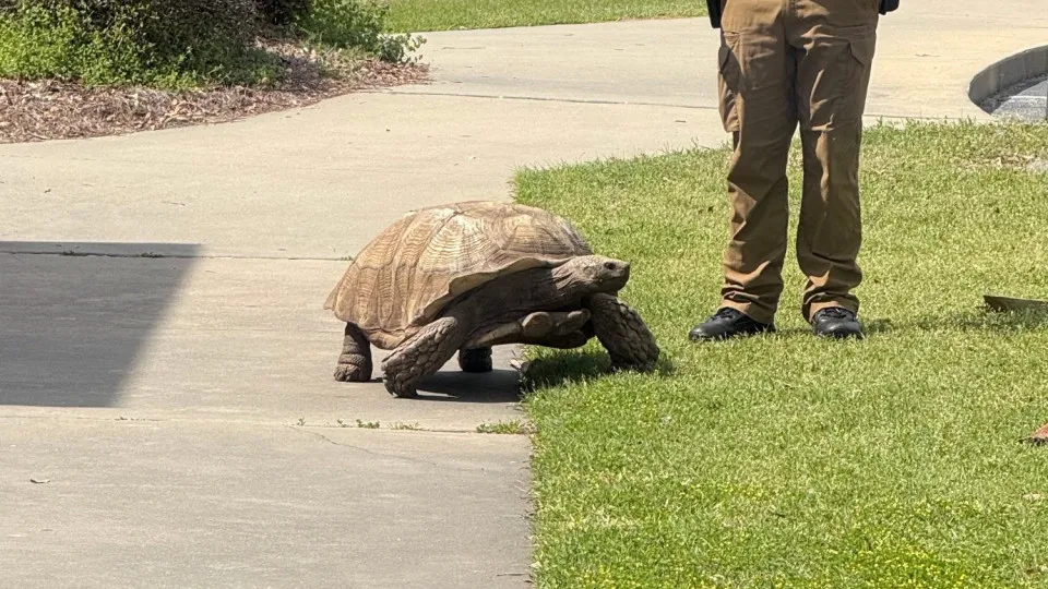“Um pouco de humor de domingo para todos”, escreveu a polícia na postagem. “Hoje, a tartaruga residente de Bradwell decidiu que, com o tempo bom, era o dia perfeito para escapar.”